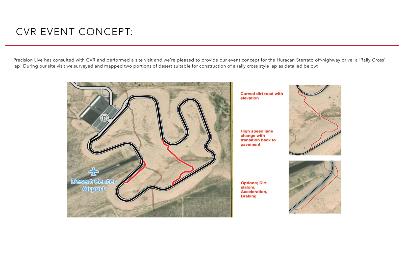 Utilizing the existing paved road course Chuckwalla Valley Raceway, we were able to create a unique driving experience, leveraging our understanding of vehicle dynamics, automotive media launch events, and our network of professional off-road course technicians